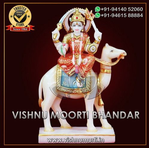 Crafted from premium-quality white marble, the idol reflects exceptional artistry, featuring Dasha Maa seated majestically on her lion vahana (vehicle), adorned with traditional jewelry and symbolic weapons. The fine detailing and serene expression make it ideal for home temples, community shrines, Navratri pandals, and spiritual spaces.