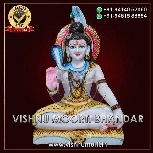 With precise detailing of features like the third eye, crescent moon, serpent, and trident (Trishul), our skilled artisans capture the divine essence of Mahadev. Available in both classic white and color-enhanced versions, we offer custom sizes, poses, and finishes to suit your spiritual needs and decor preferences.
